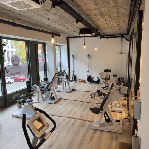 Unsere klimatisierten, hellen Räumlichkeiten bieten vielfältige Möglichkeiten für unser breites Therapiespektrum! Bei uns finden Sie Gerätetaining, einen Gruppenraum und schöne Einzeltherapieräume – Großzügig in der Platzgestaltung und modern im Design!